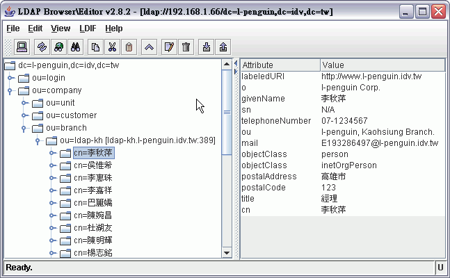 l-penguin.idv.tw -> company -> branch -> ldap-kh